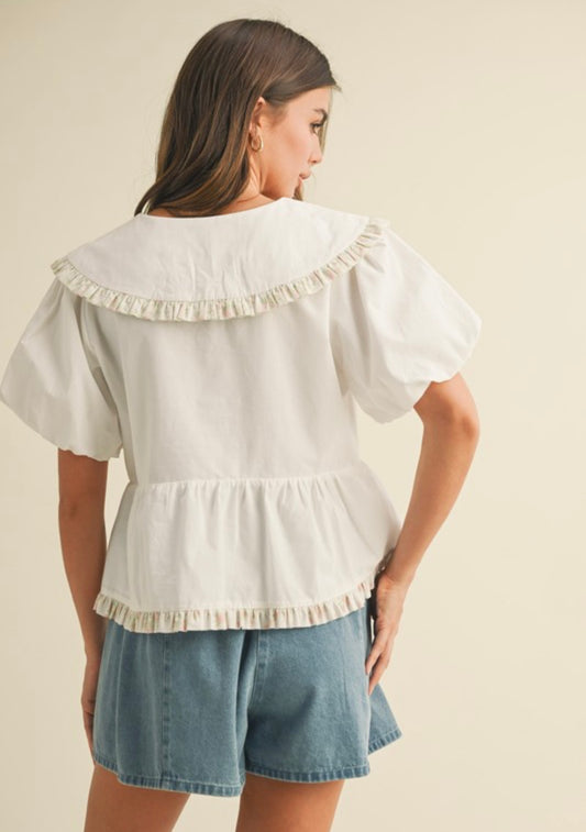 Floral Trim Baby Doll Top